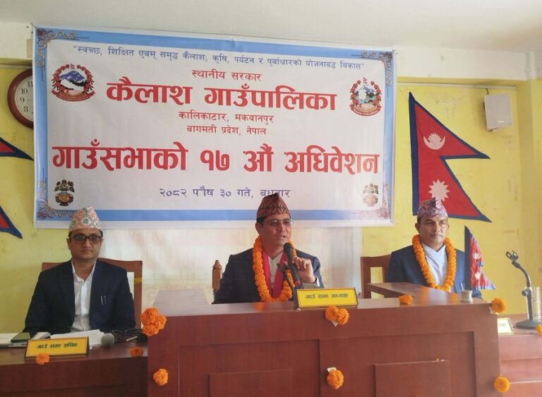 मकवानपुरको कैलाश गाउँपालिकाले संशोधित बजेट पारित गरेको छ । गाउँपालिकाको बिहीबार बसेको १७ औं गाउँसभाले आन्तरिक स्रोततर्फबाट सञ्चालित २ करोड ५१ लाख रुपियाँ संशोधित बजेट पारित गरेको हो ।