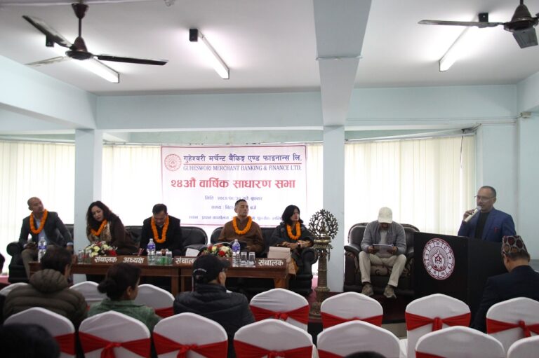 गुहेश्वरी मर्चेन्ट बैंकिङ्ग एण्ड फाइनान्स लिमिटेडको २४औँ वार्षिक साधारण सभा संस्थाको प्रधान कार्यालय गुहेश्वरी भवन, पुल्चोक, ललितपुरमा मिति २०८२ पौष ३० गते बुधबार सम्पन्न भएको छ । सभामा संस्थाका अध्यक्ष श्री युवराज भण्डारीको अध्यक्षतामा आर्थिक वर्ष २०८१÷८२ को वार्षिक प्रतिवेदन, लेखापरीक्षण प्रतिवेदनसहित आषाढ मसान्तसम्मको वासलात, नाफा–नोक्सान हिसाबलगायत सम्पूर्ण वित्तीय विवरणहरू छलफलपछि पारित गरिएको छ ।