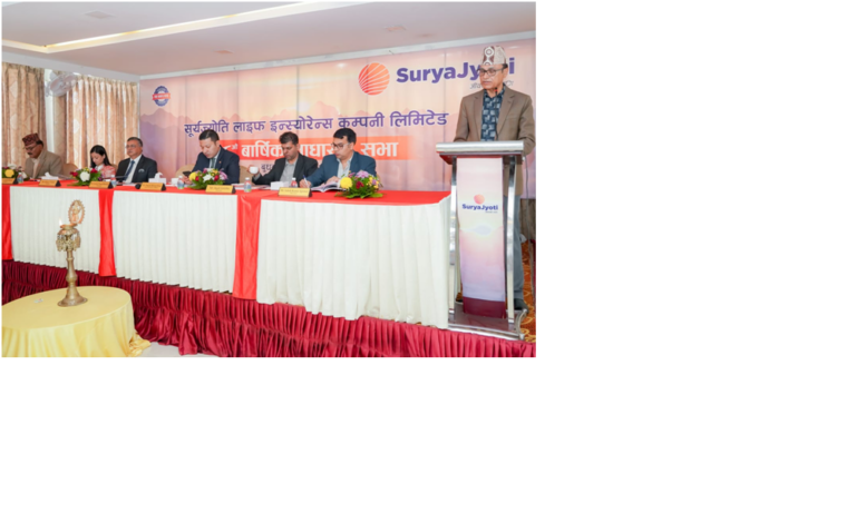 सूर्यज्योति लाइफ इन्स्योरेन्स कम्पनी लिमिटेडले आफ्नो १८औँ वार्षिक साधारण सभा विराटनगरस्थित होटल ह्यारिसन प्यालेसमा भव्य रूपमा सम्पन्न गरेको छ । कम्पनीका सञ्चालक समितिका अध्यक्ष केशवप्रसाद भट्टराईको अध्यक्षतामा सम्पन्न सभामा सञ्चालकहरू, प्रमुख कार्यकारी अधिकृत, उप–प्रमुख कार्यकारी अधिकृत, व्यवस्थापनका पदाधिकारी, शेयरधनी तथा विशिष्ट अतिथिहरूको उल्लेखनीय उपस्थिति रहेको थियो ।