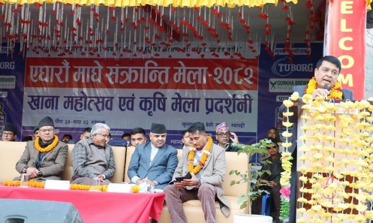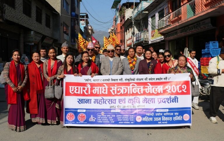म्याग्दीको सदरमुकाम बेनीमा बुधवारदेखि ११औं संस्करणको माघेसङ्क्रान्ति मेला, खाना महोत्सव तथा कृषि प्रदर्शनी–२०८२ सुरु भएको छ । ‘उद्योग, व्यापार र कलाको विकास गरौं, संस्कृतिको संरक्षण गर्दै पर्यटन प्रवद्र्धन गरौँ’ भन्ने मूल नारासहित म्याग्दी उद्योग वाणिज्य संघ र महिला उद्यम विकास समिति म्याग्दीको आयोजनामा मेला लगाइएको हो ।