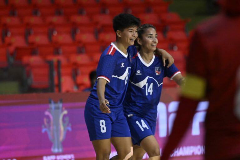 नेपाली टोलीले थाइल्याण्डमा जारी साफ महिला फुटसल च्याम्पियनसिपमा पहिलो जित हासिल गरेको छ । नेपालले बैंककस्थित नन्थाबुरी स्टेडियममा सम्पन्न खेलमा नेपालले माल्दिभ्सलाई ५–० ले हराएको हो ।
