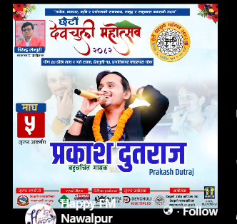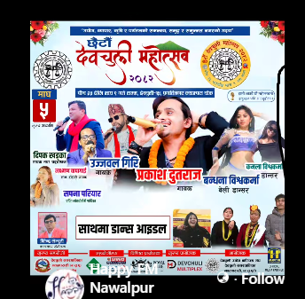 नवलपुर जिल्लाको देवचुली नगरपालिकामा छैटौँ देवचुली महोत्सव आयोजना भएको छ । पुस २५ गतेबाट सञ्चालन भएको महोत्सव माघ ११ गतेसम्म सञ्चालन हुने आयोजकले जनाएको छ । कला, संस्कृति, पर्यटन तथा धार्मिक पहिचान प्रवद्र्धन गर्ने उद्देश्यका साथ आयोजना भएको महोत्सवमा राष्ट्रिय तथा स्थानीय कलाकारको आकर्षक प्रस्तुति रहने आयोजकले जानकारी दिएका छन् ।