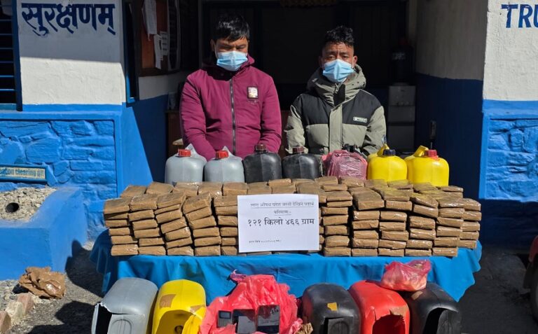 १२ वटा रबरको डिब्बाभित्र लुकाइ ल्याइएको १ सय २१.४६ केजी चरेससहित थाहा नपा–४, रुप्से बस्ने वर्ष २९ का घनश्याम बलतामाङ (अटोचालक) र मकवानपुरको कैलाश गापा–५ बस्ने वर्ष २१ का सानुकान्छा थिङसहित अटोलाई नियन्त्रणमा लिइ मकवानपुर जिल्ला अदालतबाट ६ दिन म्याद थप गरी थप अनुसन्धान भइरहेको प्रहरीले जनाएको छ ।