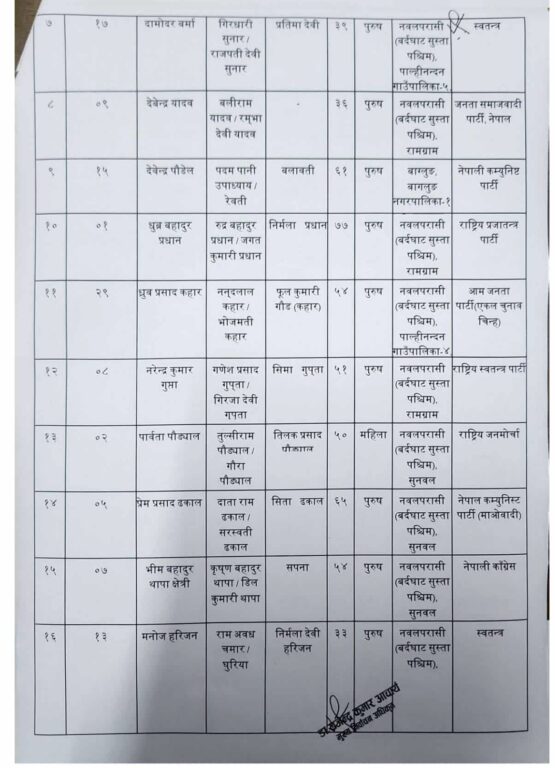 दुवै जिल्लाका सम्वन्धित निर्वाचन कार्यालयले बिहिबार उम्मेदवारहरूकाे मनाेनयनपत्र जाँचबुझ गरी नाम प्रकाशन गरेसँगै काँग्रेस उम्मेदवारको टुङ्गो लागेको हाे ।