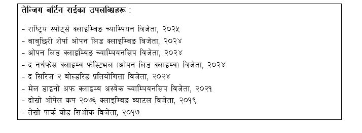 एउटा अनाथालयमा करिब २२ वर्ष अघि एक नवजात शिशु आफ्नो भाग्यबाट बेखबर निदाइरहेको थियो । उसलाई न त आफू कहाँ छ भन्ने थाहा थियो, न त भविष्यको कुनै खाका बारे ज्ञान । त्यो बालक समयसँगै आज तेन्जिङ बर्टिन राई बनेको छ । नेपाली स्पोट्र्स क्लाइम्बिङ इतिहासमै सबैभन्दा प्रेरणादायी र असाधारण नाम । उनको जीवनयात्रा केवल खेलकुदको सफलताको कथा मात्र होइन, यो त अभाव, पीडा, जोखिम र सपनाबीचको एउटा गहिरो मानवीय संघर्ष हो, जसले आज हजारौं नेपाली युवालाई “उचाइ” मा हेर्न बाध्य बनाएको छ ।