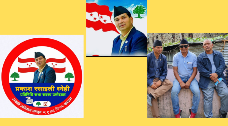 चुनावी भेटघाट तथा सभाहरूमा आम नागरिकले देखाएको उत्साहजनक सहभागिताले आफ्नो जीत सुनिश्चित हुने विश्वास उम्मेदवार स्नेहीले व्यक्त गर्नुभएको छ। उहाँले लोकतन्त्र, संविधान र जनअधिकारको संरक्षणका लागि रुख चिन्हमा मतदान गर्न सबै मतदातालाई आग्रह गर्नुभएको छ। प्रतिनिधि सभा सदस्य पदका उम्मेदवार प्रकाश रसाइली स्नेही नेपाली काँग्रेसकाे विशेष महाधिवेशन बाट सहमहामन्त्रीमा निर्वाचित हुनुभएकाे थियाे । काँग्रेसकाे केन्द्रीय राजनीतिमा उहाँ प्रभावशाली र प्रखरवक्ताकाेरूपमा चिनिन्छन् ।