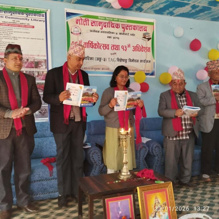 हरि प्रसाद पोखरेलको अध्यक्षतामा गठित नयाँ कार्यसमितिमा उपाध्यक्ष : पूर्ण प्रसाद सापकोटा सचिव : इन्द्र प्रसाद सापकोटा कोषाध्यक्ष : सिताराम सापकोटा रहनुभएको छ। त्यसैगरी, गोविन्द सापकोटा, ल्याम बहादुर दर्जी, नेत्र बराल, लुकास सुबेदीलगायत सदस्यका रूपमा निर्वाचित हुनुभएको छ। कार्यक्रमले मोति पुस्तकालयको गौरवशाली इतिहासलाई स्मरण गर्दै भविष्यमा अझ प्रभावकारी, समावेशी र प्रविधिमैत्री पुस्तकालय निर्माणतर्फ अघि बढ्ने प्रतिबद्धता समेत व्यक्त गरेको छ।