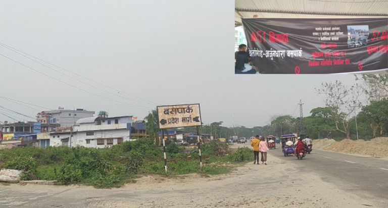 झापा बिर्तामोड बसपार्कको ५१ बिघा क्षेत्रफलभित्र चुनावी गतिविधि गर्न रोक