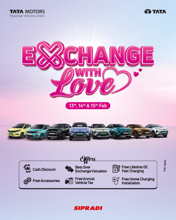 नेपालका लागि टाटा मोटर्सको एकमात्र अधिकारिक वितरक, सिप्रदी ट्रेडिंङ प्रालिले भ्यालेन्टाइन सप्ताह–२०२६ को अवसरमा, फाल्गुन १ गते देखि फागुन ३ गतेसम्म (१३ फेब्रुअरीदेखि १५ फेब्रुअरी, २०२६) भ्यालेन्टाइन स्पेशल ‘एक्सचेन्ज विथ लभ’कार्यक्रम गर्ने भएको छ ।