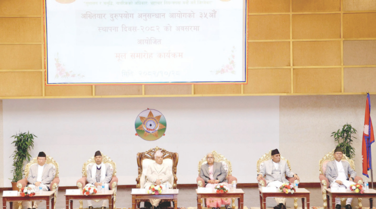 भर्खरै युवापुस्ताको विद्रोहमार्फत सुशासन र शासकीय बेथिति अन्त्यको चाहना राखेको स्मरण गराउँदै राष्ट्रपति पौडेलले भन्नुभयो– ‘सुशासन र पारदर्शिताबिना लोकतन्त्रको प्रतिफल जनताको घरदैलोमा पु¥याउन सकिँदैन । जनताको अपेक्षाअनुसारको विकास र समृद्धि हासिल गर्ने प्रमुख र अनिवार्य सर्त नै अख्तियार दुरुपयोगको अन्त्य र भ्रष्टाचार नियन्त्रण हो ।’