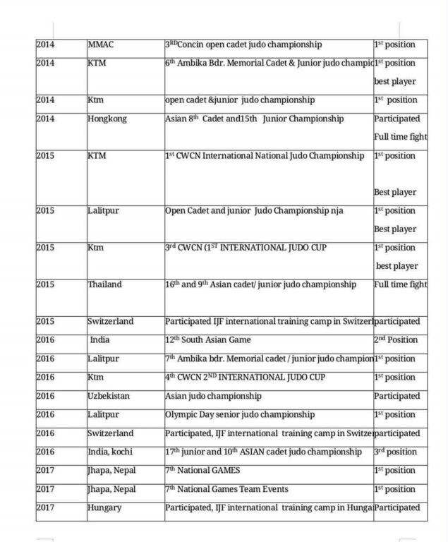 ओलम्पियन प्रशिक्षक देबु थापाको मार्गदर्शन, आईओसी छात्रवृत्तिको टेवा र उनको आफ्नै कहिल्यै नथाक्ने समर्पणले उनलाई एउटा विश्वस्तरीय आइकनको रूपमा स्थापित ग¥यो । यही अटुट मेहनतको कदर गर्दै नेपाल ओलम्पिक कमिटीले उनलाई २०२८ को ओलम्पिक स्कलरसिपका लागि पनि छनोट गरेको छ । जसले उनको भविष्यका सपनाहरूलाई थप पखेटा हालिदिएको छ । यो केवल आर्थिक सहयोग मात्र होइन, यो त नेपालले विश्व खेलकुदमा फेरि एउटा सुनौलो इतिहास रच्ने सम्भावनाको एउटा बलियो ढोका हो ।