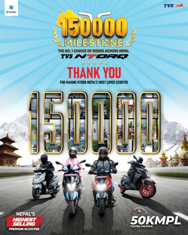 टिभिएस एटीओआरक्यु १२५ले नेपालमा १ लाख ५० हजार प्रयोगकर्ता पार गर्दै दुई–पाङ्ग्रे बजारमा ऐतिहासिक उपलब्धि हासिल गरेको छ । यस सफलतासँगै एनटोरक १२५ नेपालका सबैभन्दा लोकप्रिय प्रदर्शन–केन्द्रित स्कुटरमध्ये एकका रूपमा अझ मजबुत बनेको छ ।