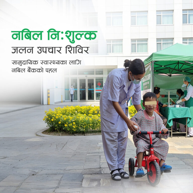 नबिल बैंक, सुषमा कोइराला मेमोरियल अस्पताल तथा सेती प्रादेशिक अस्पतालको संयुक्त आयोजनामा धनगढीस्थित सेती प्रादेशिक अस्पतालमा ‘नबिल निःशुल्क जलन उपचार शिविर’ सञ्चालन गर्ने भएको छ । यही फागुन १२ देखि १४ गतेसम्म सञ्चालन हुने शिविरमार्फत जलनका घटनाबाट पीडित भएकाहरु लाभान्वित हुने बैंकले जनाएको छ ।