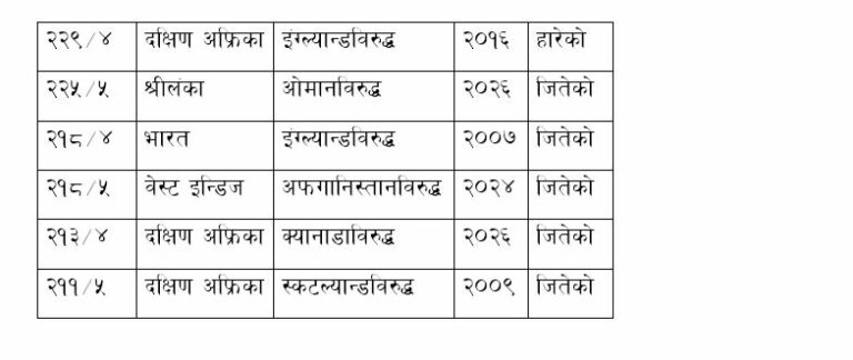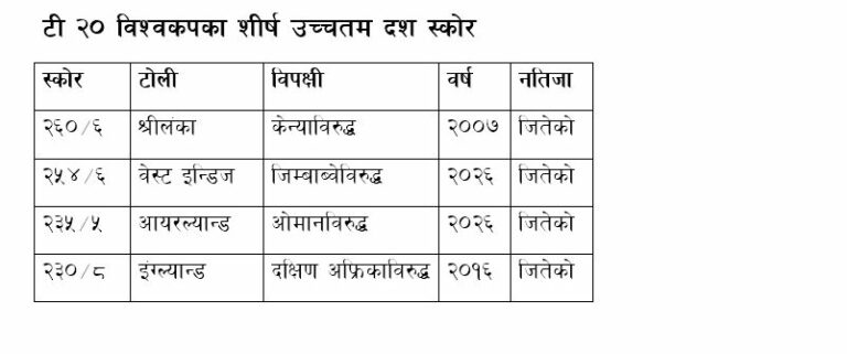 टी २० विश्वकपमा सर्वाधिक उच्चतम स्कोरभन्दा यो केवल ६ रनले पछि रहेको छ । तर, यो जारी प्रतियोगितामा सर्वाधिक उच्चतम रन भने बनेको छ । यसअघि समूह चरणमा आयरल्यान्डले ओमानविरुद्ध ५ विकेटको क्षतिमा २३५ रन बनाएको सर्वाधिक उच्चतम स्कोर थियो । जारी प्रतियोगितामा अहिलेसम्म ७ पटक २ सय स्कोर पार भएको छ ।