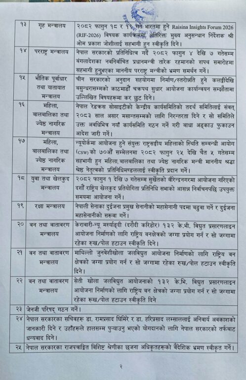 यस्तै, सरकारले विक्रम संवत् २०८३ सालका लागि वैशाख १ देखि चैत मसान्तसम्म दिइने सार्वजनिक बिदा निर्धारण गरेको प्रवक्ता अर्यालले चर्चा गरे ।