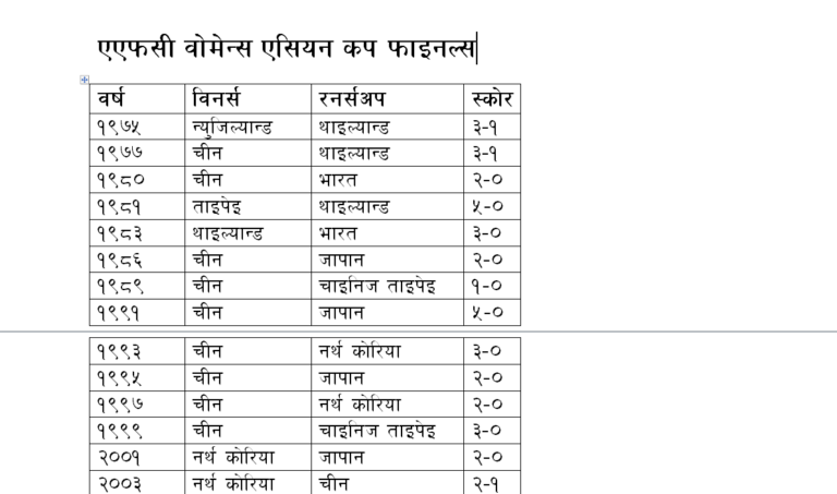 –चीनले सबैभन्दा बढी ९ पटक उपाधि जितेको ।