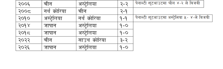 यसअघि जापानले २०१४ र २०१८ मा उपाधि जित्दा अस्टे«लियालाई १–० गोलअन्तरले नै हराएको थियो । अस्टे«लियाले २०१० मा उपाधि जितेयता ३ पटक फाइनल खेल्यो तर, तीनै पटक एउटै टिमसँग हारको सामना गर्नु परेको छ ।