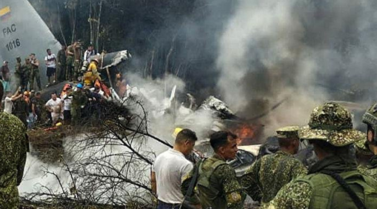 कोलम्बियाको दक्षिण–पश्चिमी पुएर्टो लेगुइजामो क्षेत्रमा सैनिक विमान दुर्घटना हुँदा कम्तीमा ९० जनाको ज्यान गएको छ।