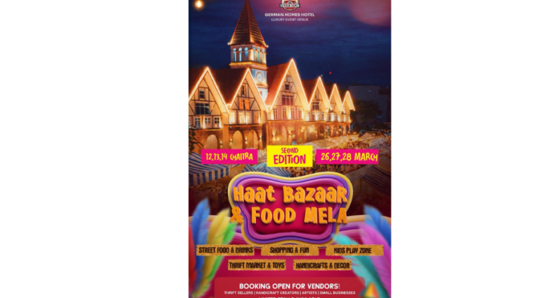 गठ्ठाघरस्थित जर्मन हाेम्स हाेटलमा चैत १२, १३ र १४ गते तीन दिने ‘हाट बजार तथा फुड मेला २०८२ (दोस्रो संस्करण 2.0)’ आयोजना गरिएको छ। आयोजकका अनुसार मेलामा संस्कृति, परिकार, सिर्जनशीलता र समुदायलाई एकै थलोमा समेट्दै विभिन्न प्रकारका स्टलहरू राखिनेछन्।