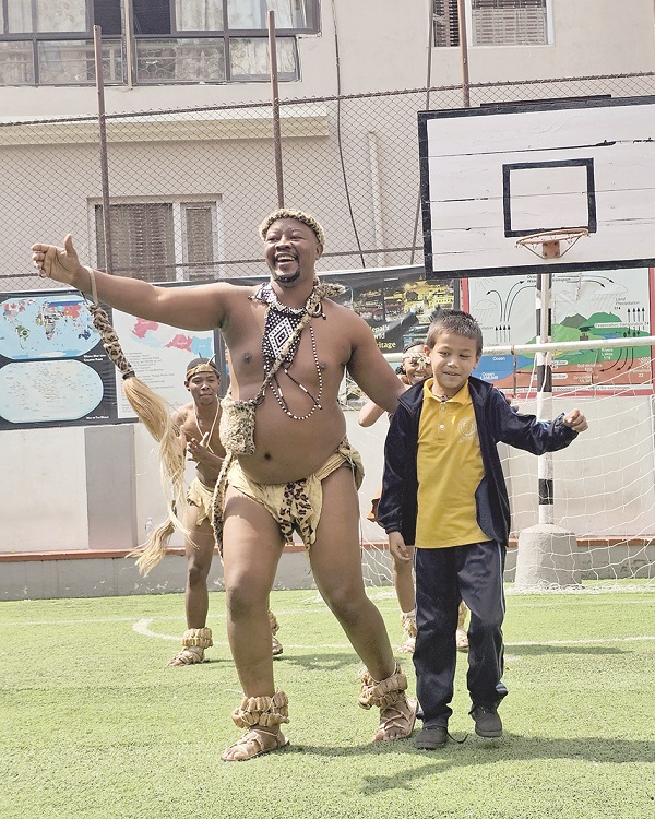 मञ्चमा कहिले नेपाली मौलिक बाजाको धुन गुन्जिन्थ्यो, त कहिले कलाकारहरू अफ्रिकी ढोलकको तालमा नाच्थे। कलाकारहरूले विभिन्न परम्परागत बाजा बजाउदै लोकनृत्यहरू प्रस्तुत गरेका थिए। नेपालसहित भारत, बोत्सवाना, एस्टोनिया, जर्मनी र दक्षिण अफ्रिकाका कलाकारहरूले आ–आप्mनो पहिचान बोकेका नृत्य, संगीत र परम्परागत कला प्रस्तुत गर्दा वातावरण रोमाञ्चकताले भरिएको थियो। कार्यक्रममा सोही विद्यालयका कक्षा ६ का विद्यार्थीहरूले प्रस्तुत गरेको नेवारी नृत्यले विदेशी कलाकारहरूलाईसमेत मन्त्रमुग्ध बनायो।