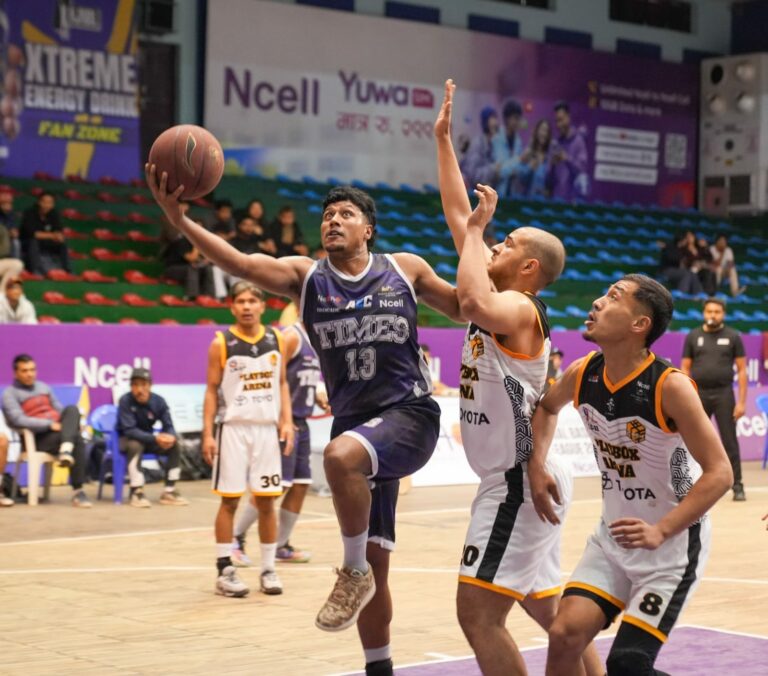 त्रिपुरेश्वरस्थित दशरथ रंगशाला कभर्डहलमा शनिबार भएको खेलमा टाईम्सले प्लेबक्स एरेनालाई ७६–५४ ले पराजित गरेको हो ।