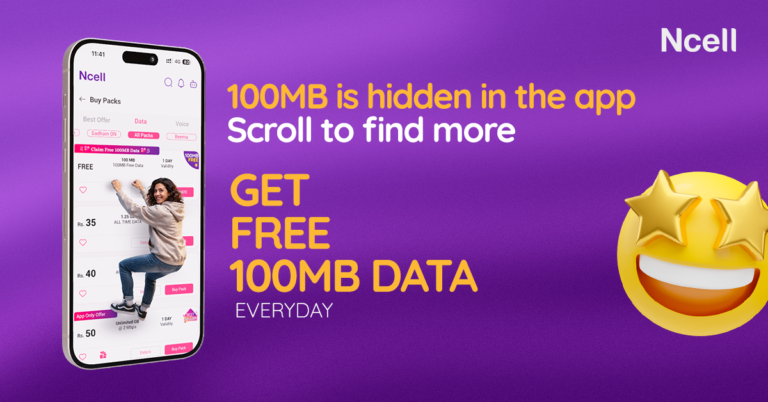 एनसेलले ग्राहकका लागि एनसेल एपमार्फत दैनिक १ सय एमबी निःशुल्क डेटा पाइने अफर संचालनमा ल्याएको छ । यसका साथैग्राहकले हरेका हप्ता आकर्षक डेटा भोल्युम पुरस्कार स्वरुप जित्न सक्छन् । ग्राहक अनुभव अभिवृद्धि र डिजिटल प्रयोगलाई प्रोत्साहन गर्ने आफ्नो प्रतिबद्धता बमोजिम कम्पनीले यो अफर संचालनमा ल्याएको हो ।