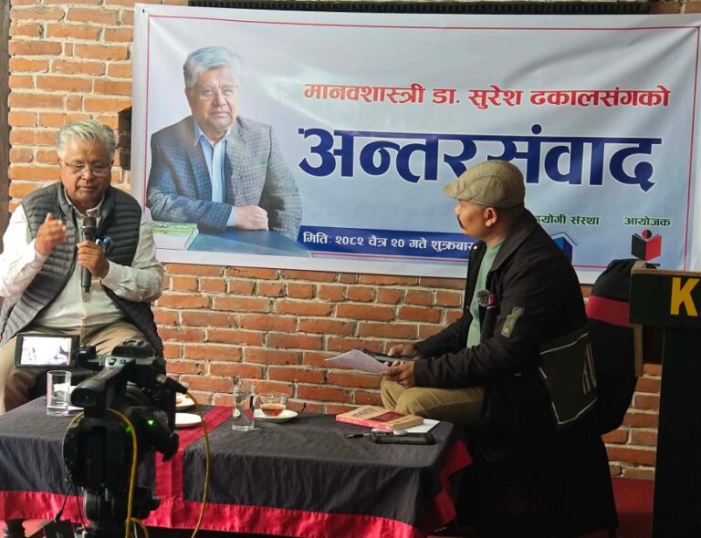 मानवशास्त्री डा. सुरेश ढकालसँग इतिहास, मानवशास्त्र, संस्कृति तथा समसामयिक समाजका बहुआयामिक विषयमा केन्द्रित अन्तरसंवाद कार्यक्रम भक्तपुरमा सम्पन्न भएको छ।