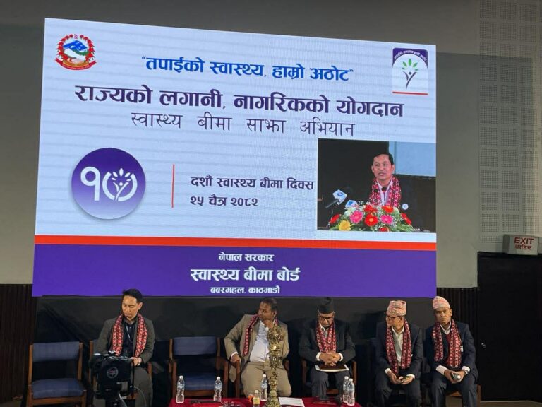 स्वास्थ्य बीमा बोर्डको १० औं स्वास्थ्य बीमा दिवस भब्य कार्यक्रमका बीच मनाईयो । कार्यक्रममा श्रमरोजगार तथा सामाजिक सुरक्षा मन्त्री दीपक कुमार साहको प्रमुख आतिथ्यमा भयो । कार्यक्रमका प्रमुख अतिथि साहले स्वास्थ्य सेवालाई गुणस्तरिय बनाउछौ ।यसका लागी सबैले सहकार्य गर्नपर्छ । यो सबैको दायित्व हो । स्वास्थ्य बीमा हरेक नागरिकको अभिन्न अंग बनाउनुपर्छ । यसका लागी बोर्डले खाकै लिएर आउनुस भन्नुभयो ।