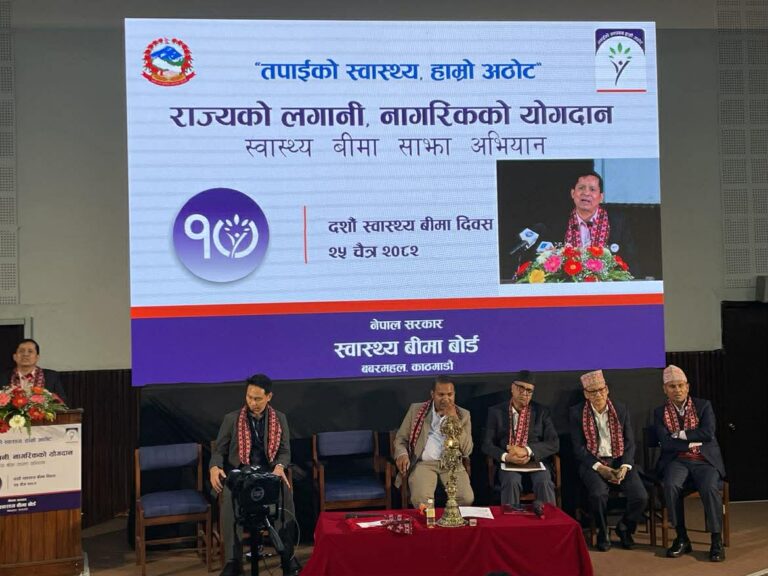 स्वास्थ्य बीमा बोर्डको १० औं स्वास्थ्य बीमा दिवस भब्य कार्यक्रमका बीच मनाईयो । कार्यक्रममा श्रमरोजगार तथा सामाजिक सुरक्षा मन्त्री दीपक कुमार साहको प्रमुख आतिथ्यमा भयो । कार्यक्रमका प्रमुख अतिथि साहले स्वास्थ्य सेवालाई गुणस्तरिय बनाउछौ ।यसका लागी सबैले सहकार्य गर्नपर्छ । यो सबैको दायित्व हो । स्वास्थ्य बीमा हरेक नागरिकको अभिन्न अंग बनाउनुपर्छ । यसका लागी बोर्डले खाकै लिएर आउनुस भन्नुभयो ।