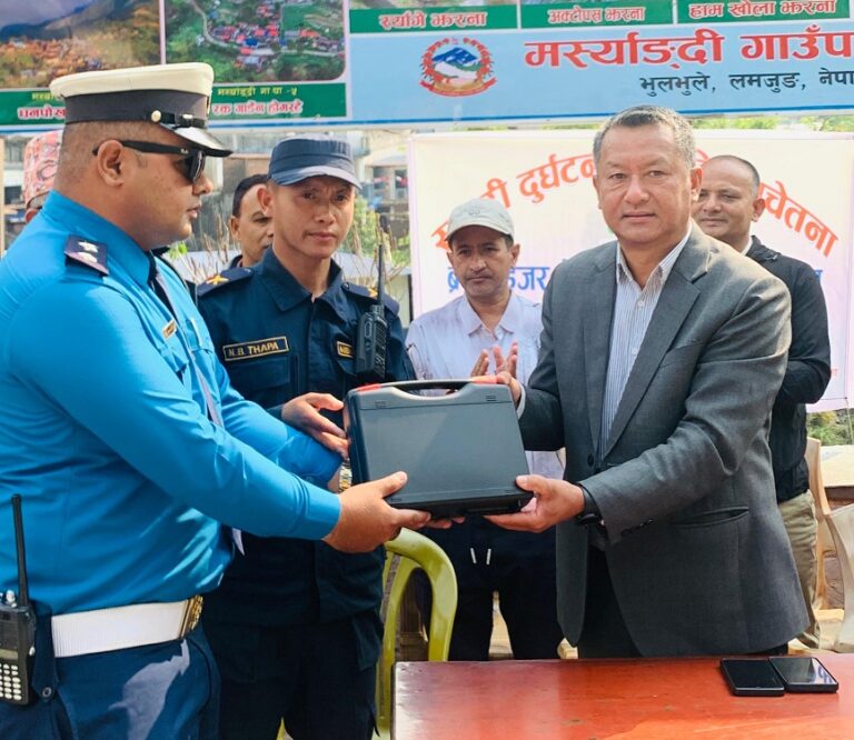 यसै अवसरमा गाउँपालिका अध्यक्ष गुरुङले जिल्ला ट्राफिक कार्यालय लमजुङका प्रहरी नायब निरीक्षक गौतम बहादुर खत्रीमार्फत ब्रेथलाइजर मेसिन हस्तान्तरण गरेका थिए। सो उपकरणले मादक पदार्थ सेवन गरी सवारी चलाउने प्रवृत्तिलाई नियन्त्रण गर्न सहयोग पुग्ने विश्वास लिइएको छ।
