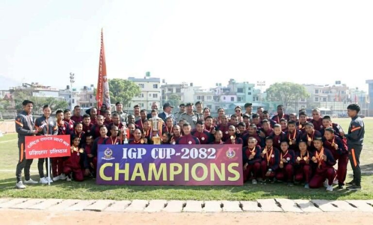 सशस्त्र प्रहरी महानिरीक्षक कप–२०८२’ को रनिङ्ग ट्रफि प्रशिक्षण प्रतिष्ठान मातातिर्थलाई