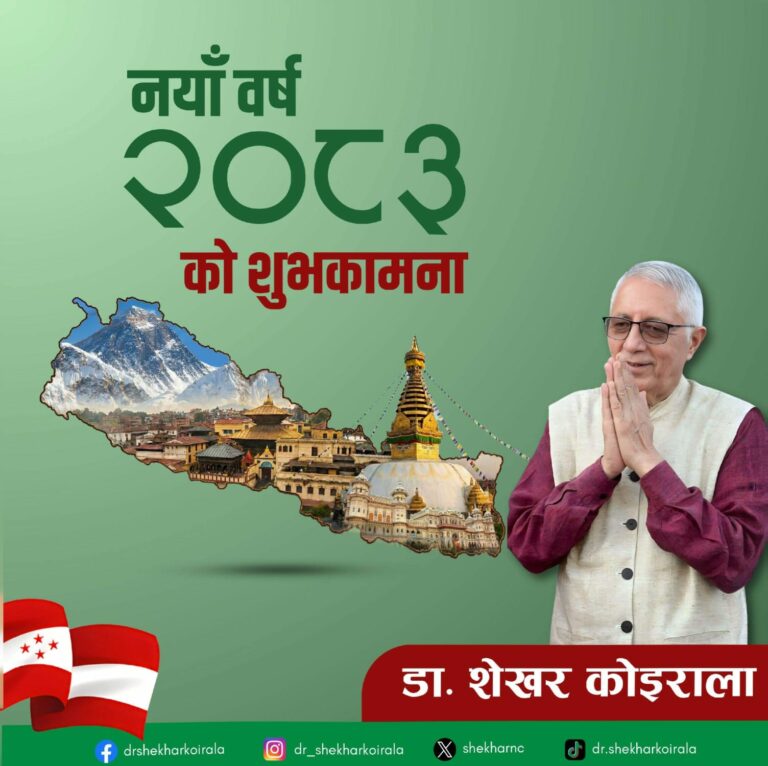 नेपाली कांग्रेसका नेता डा. शेखर कोइरालाले नयाँ वर्ष २०८३ को अवसरमा सम्पूर्ण नेपाली दाजुभाइ तथा दिदीबहिनीमा सुख, शान्ति र समृद्धिको कामना गर्नुभएको छ।