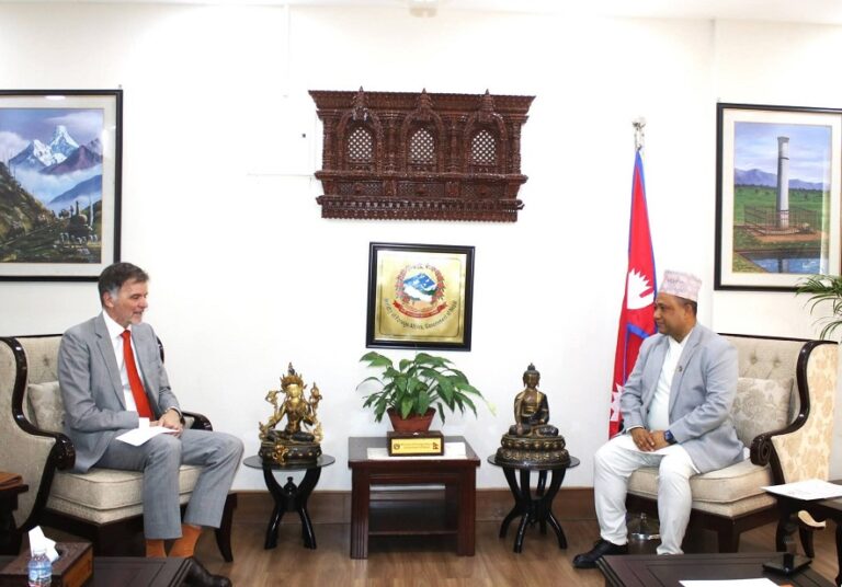 परराष्ट्र मन्त्री शिशिर खनालसँग नेपालका लागि जर्मनीका राजदूत उडो यूजेन भोल्जले शिष्टाचार भेटवार्ता गरेका छन् । मन्त्रालयमा आज भएको भेटमा उनीहरुबीच नेपाल–जर्मनी सम्बन्धका विविध विषयहरूमा छलफल भएको मन्त्रालयले जनाएको छ ।