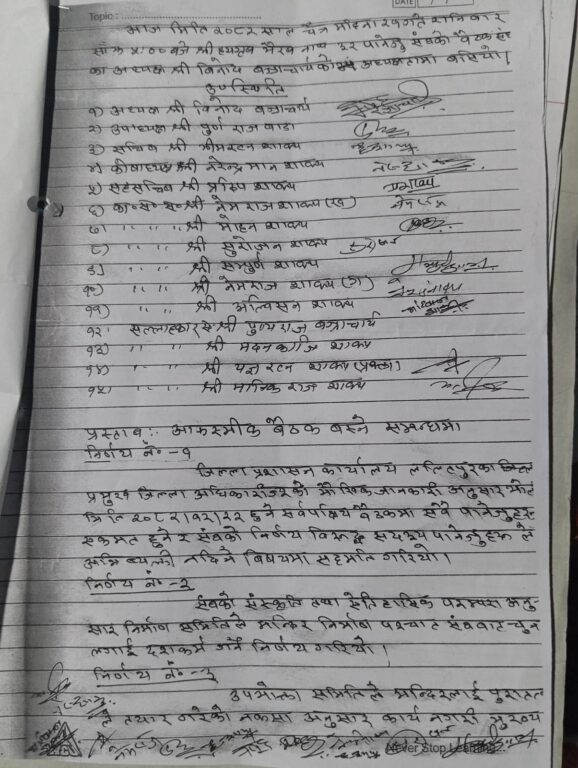 ललितपुर महानगरपालिकाले दुई पक्षबीचको जारी विवादलाई मध्यमार्गी बाटो खोज्ने तयारी गरेको छ । मेयर चिरिबाबु महर्जनको अध्यक्षतामा हिजो बुधबार बसेको अनौपचारिक बैठकले मिलाएर लैजाने विषयमा छलफल भएको थियो ।