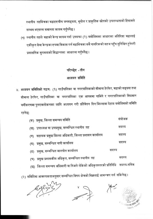यसका लागि जिल्ला समन्वय समितिको नेतृत्वमा अध्ययन समिति गठन गरिनेछ। समितिको सिफारिसपछि गाउँ वा नगरसभाको दुई तिहाइ बहुमतले प्रस्ताव पारित गरी प्रदेश सरकारमार्फत संघीय सरकारसमक्ष पठाउने प्रक्रिया तय गरिएको छ।