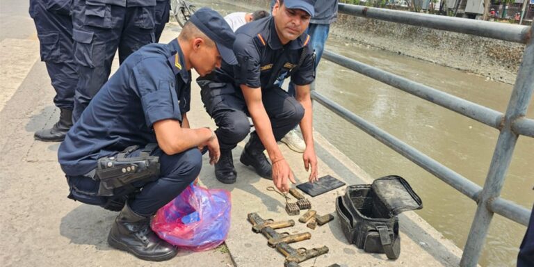 काठमाडौं महानगरपालिका–१५ शोभाभगवतीस्थित विष्णुमती खोला किनारमा सरसफाइका क्रममा ती हतियार फेला परेको जिल्ला प्रहरी कार्यालयले जनाएको छ।