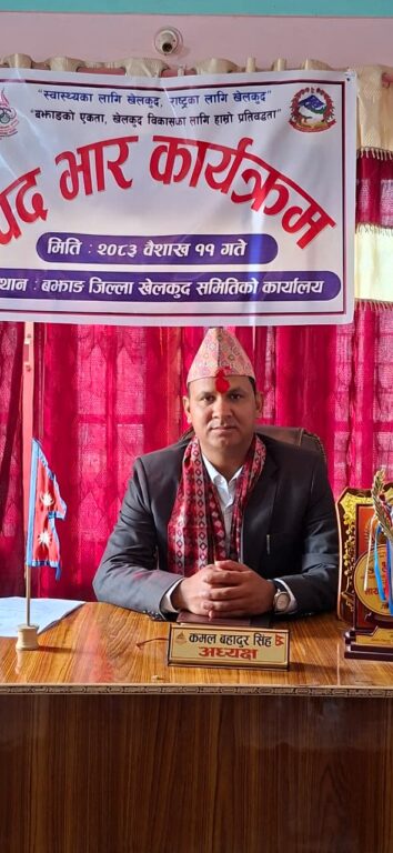 नवनियुक्त अध्यक्ष कमल बहादुर सिंह २०६५ साल देखि काठमाडौ क्याम्पसमा पढ्दा र अन्य बझाङका विभिन्न खेलकुदहरूमा सरिक भई छैटौं राष्ट्रिय खेलमा बझाङ बाट भलिबल टिमकाे क्याप्टेन समेत भएका थिए । बझाङकाे खेल क्षेत्रमा अध्यक्ष कमल बहादुर सिंह एउटा प्रतिभाशाली खेलाडीका रूपमा पनि चिरपरिचित ब्यक्तित्व हुन् ।