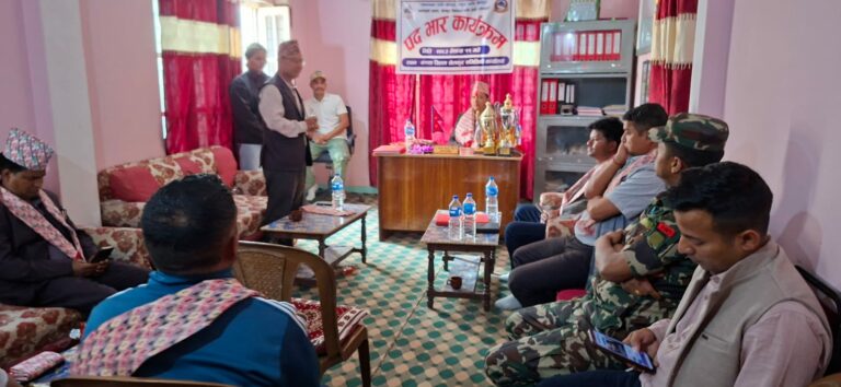 कार्यक्रमका प्रमुख अतिथि जिल्ला समन्वय समितिका प्रमुख नर बहादुर बाेहराले सिंहकाे नाम लेखेकाे नेमप्लेट हस्तान्तरण गरि सदरमुकाम चैनपुरमा रहेकाे समितिकाे कार्यालयमा पदभार ग्रहण गरिएकाे हाे ।