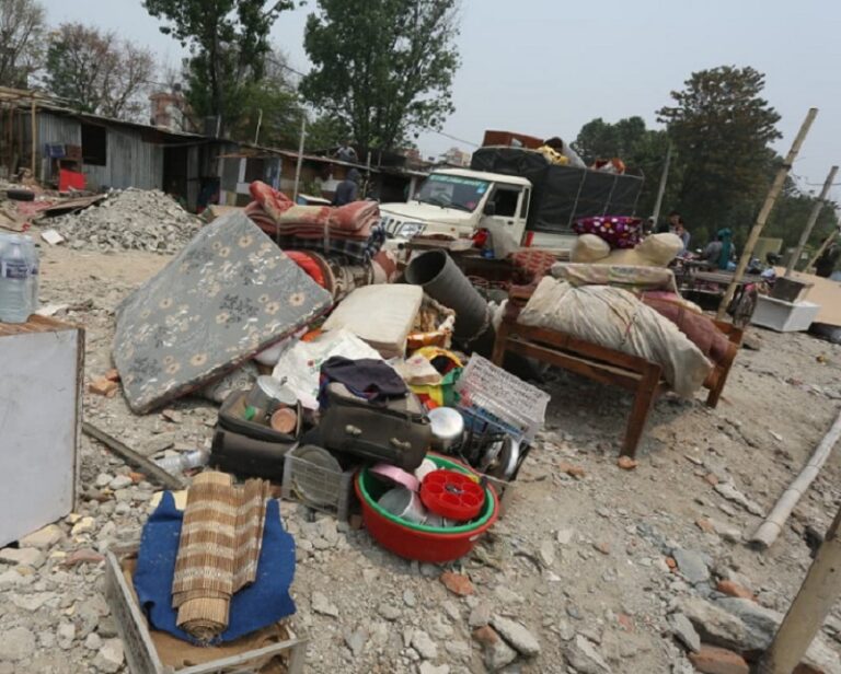 कतिपयले हतार–हतार आफ्ना जस्तापाता, काठका सामग्री र भान्साका सामानहरू ट्याक्टर तथा रिक्सामा राखिरहेका छन्।