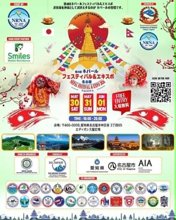 जापानको नागोया शहरमा हुने नेपाल फेष्टिबलको तयारी तीव्र पारिएको आयोजकले बताएका छन्। गैर आवासीय नेपाली संघ (NRNA) जापान क्षेत्रीय समन्वय परिषद् नागोयाको आयोजनामा आउँदो मे महिना ३०, ३१ तथा जुन १ तारिक चौथो नेपाल फेस्टिवल एवं एक्सपो २०२६ साकायको हिसाया डोरी पार्क मा सञ्चालन हुन लागेको हो।