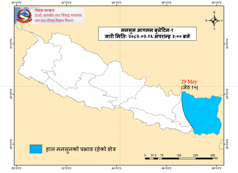 नेपालमा सरदर मितिभन्दा १५ दिन छिटो मनसुन भित्रिएको छ। जल तथा मौसम विज्ञान विभागले आज विज्ञप्ति जारी गरी यस वर्षको मनसुन गएराति नेपालको पूर्वबाट प्रवेश गरी कोशी प्रदेशका अधिकांश भू–भागमा विस्तार भएको जनाएको हो ।