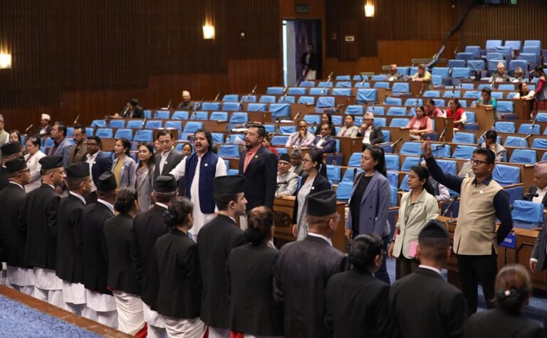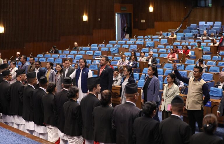 राष्ट्रिय स्वतन्त्र पार्टीका सांसदहरूको बेल घेराउको विरोधका बाबजुद पनि संसद् जारी रहेको छ । रास्वपाका सांसदहरू बेल घेराउ गर्दै भुईँमा बसेका छन्। तर सभामुख देवराज घिमिरेले भने संसद् निरन्तर चलाइरहेका छन् ।