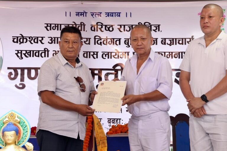 वाग्मती प्रदेश श्रम, रोजगार तथा यातायात मन्त्री प्रेमभक्त महर्जनले चक्रपथबाहिर साविकका गाविस बौद्ध विहारमा निर्माणमा बज्राचार्यले पु¥याउनुभएको योगदानको चर्चा गरे ।