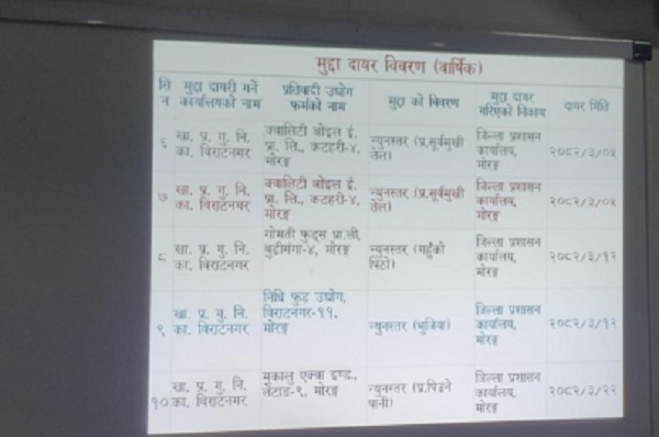 विराटनगर खाद्य कार्यालयका अनुसार चालु आर्थिक वर्षमा मात्रै १० वटा उद्योगमाथि गुणस्तरहीन उत्पादनको अभियोगमा मुद्दा दायर गरिएको छ।