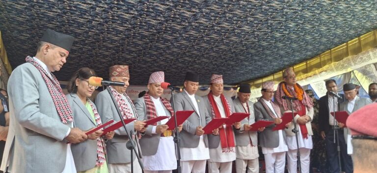 मुख्यमन्त्री बानियाँको सिफारिसमा प्रदेश प्रमुख दीपकप्रसाद देवकोटाले ८ मन्त्रीलाई शपथग्रहण गराउनुभएको छ । कांग्रेसका २ र एमालेका ६ मन्त्रीले पद तथा गोपनीयताको शपथग्रहण गरेका हुन् । मुख्यमन्त्री बानियाँले एमालेबाट मधुसूदन पौडेललाई कृषि तथा पशुपक्षी, डा. दिनेशचन्द्र देवकोटालाई भौतिक पूर्वाधार विकास, जयराम थापालाई श्रम, रोजगार तथा यातायात, भरतबहादुर केसीलाई वन तथा वातावरण, किरण थापालाई स्वास्थ्य र विन्दु श्रेष्ठलाई उद्योग, वाणिज्य, भूमि तथा प्रशासन मन्त्री नियुक्त गर्नुभएको छ ।