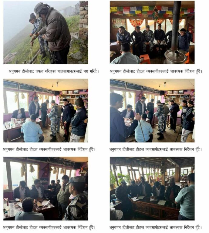 गोसाइकुण्ड पदमार्गमा अवस्थित होटल तथा अस्थायी थर्पु व्यवसायीहरूमा अनुगमन गर्दा २६ वटा होटल र ६४ वटा थर्पुमाथि कारबाही गरिएको छ। अनुगमनको क्रममा मापदण्ड नपुगेका होटल र थर्पुहरूबाट जम्मा ३ लाख ८० हजार रुपैयाँ बराबरको जरिवाना असुल गरिएको हो।