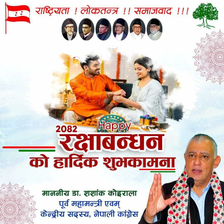नेपाली कांग्रेसका नेता डा.शशांक कोइरालाले जनैपूर्णिमा, क्वाँटी खाने दिन तथा रक्षा बन्धनको अवसरमा देश तथा विदेशमा रहनुभएका सम्पूर्ण नेपाली दाजुभाइ तथा दिदीबहिनीहरूमा हार्दिक मंगलमय शुभकामना व्यक्त गरेका छन्।