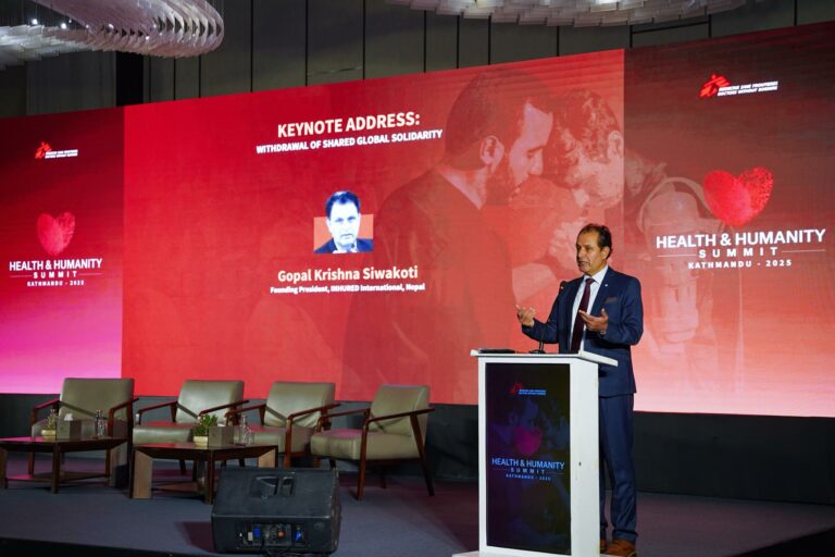 कार्यक्रममा इन्हुरेड इन्टरनेसनल नेपालका संस्थापक अध्यक्ष डा. गोपालकृष्ण शिवाकोटीले द्वन्द्व, असमानता र एकताको ह्रासले उत्पन्न गरेको अस्थिरताले विशेषगरी विश्वका सबैभन्दा कमजोर समाजहरूमा मानवीय कार्यलाई ठप्प बनाएको बताए । उनले निष्पक्ष साझेदारी, सशक्त स्थानीय नेतृत्व र पारदर्शी शासनमार्फत विश्वास पुनःस्थापित गर्न आह्वान गर्दै भने- ‘आजका मानवीय चुनौतीहरूको व्यापकता र जटिलतालाई सामना गर्न केवल समावेशी अधिकारमा आधारित दृष्टिकोणले मात्र सक्षम हुन्छ।’