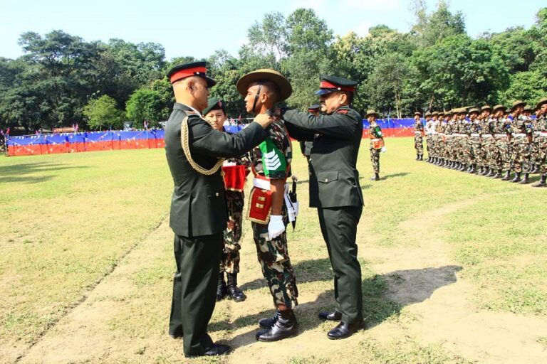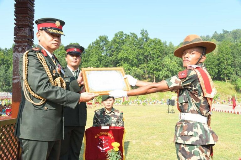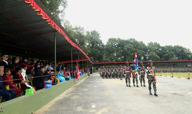 त्रिशूलीस्थित श्री नं. १ सैन्य तालिम केन्द्रमा सम्पन्न मुख्य कार्यक्रमको निरीक्षण नेपाली सेनाका सैनिक तालिम महानिर्देशक ध्रुव प्रकाश शाहले गरेका थिए।