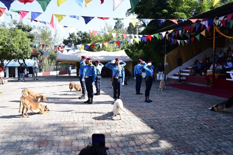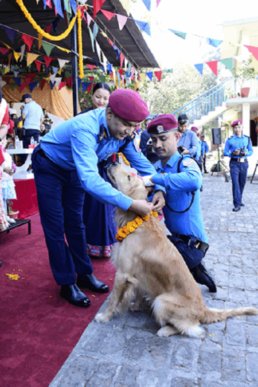 यमपञ्चकको दोस्रो दिन अर्थात कुकुर तिहारका अवसरमा नेपाल प्रहरी केनाईन कार्यालय महाराजगंजमा सोमबार आयोजित कार्यक्रमबीच कुकुर पूजा सम्पन्न भएको छ ।